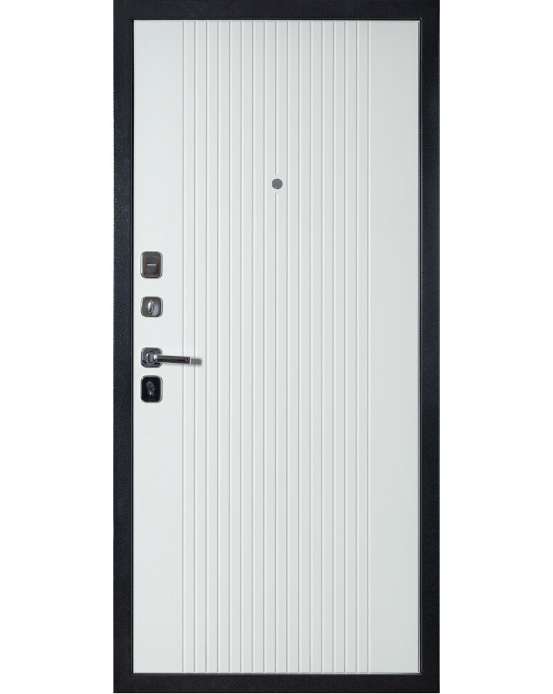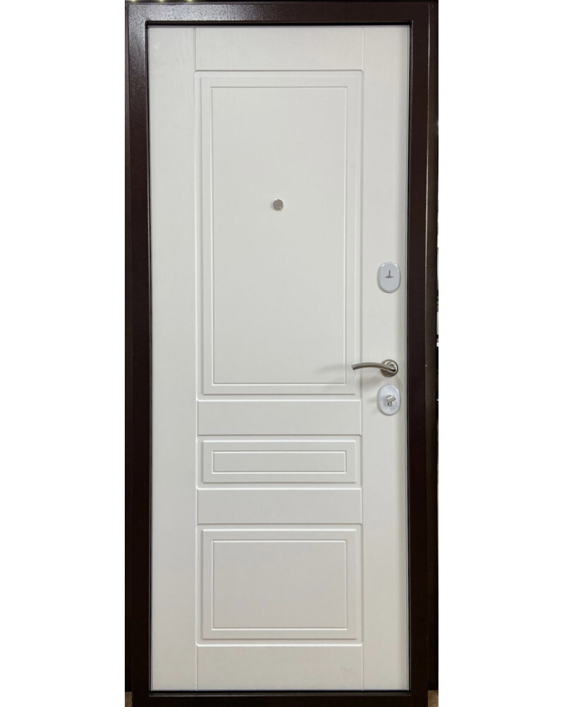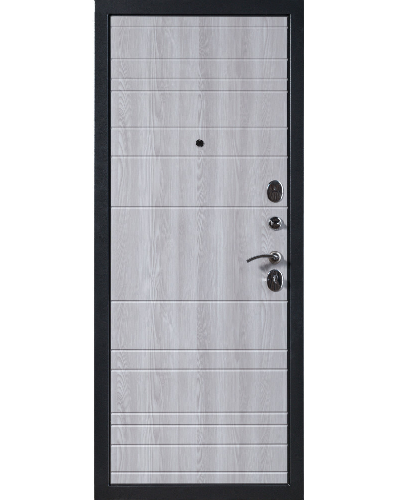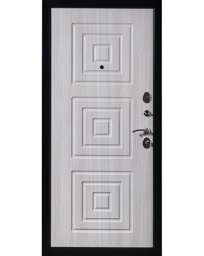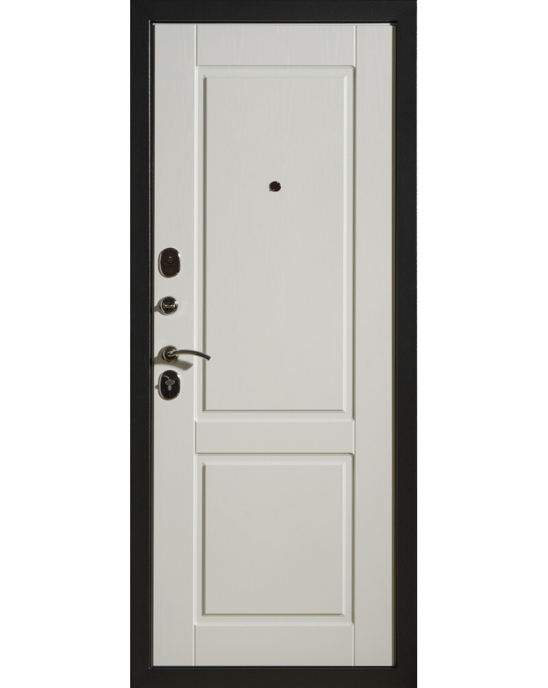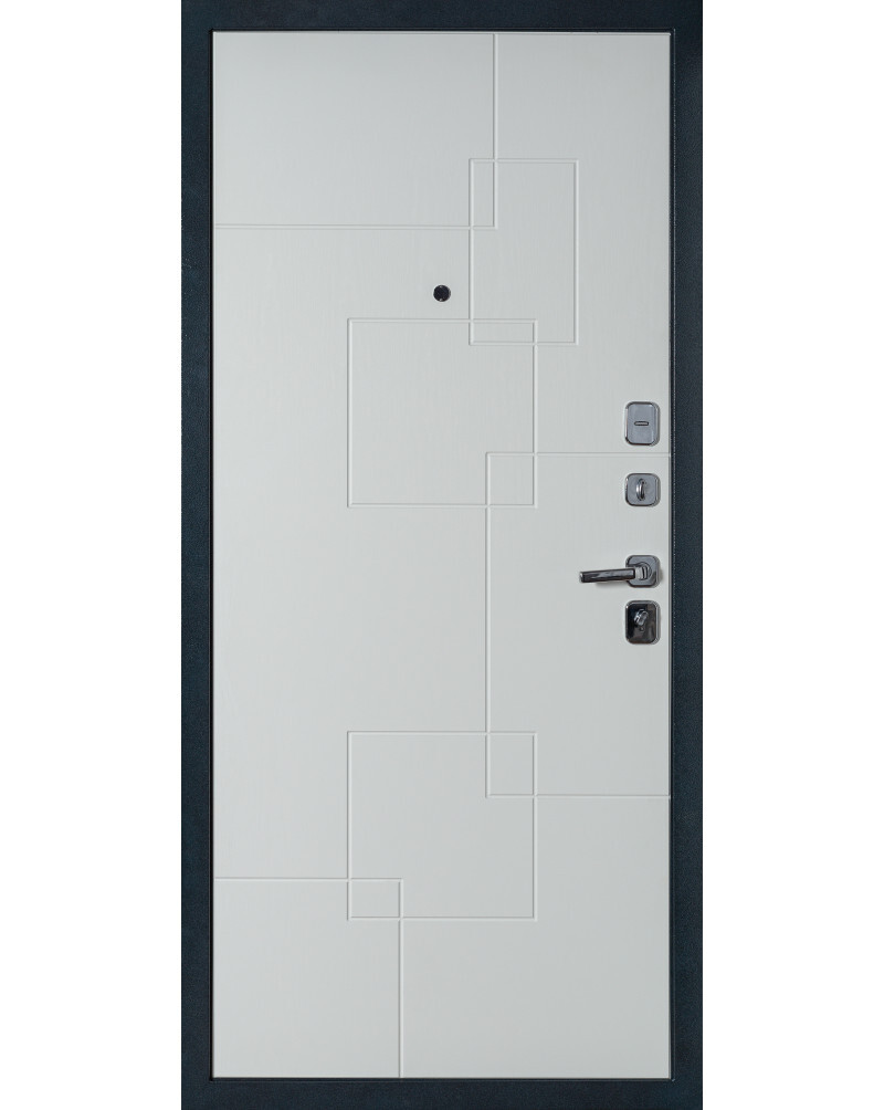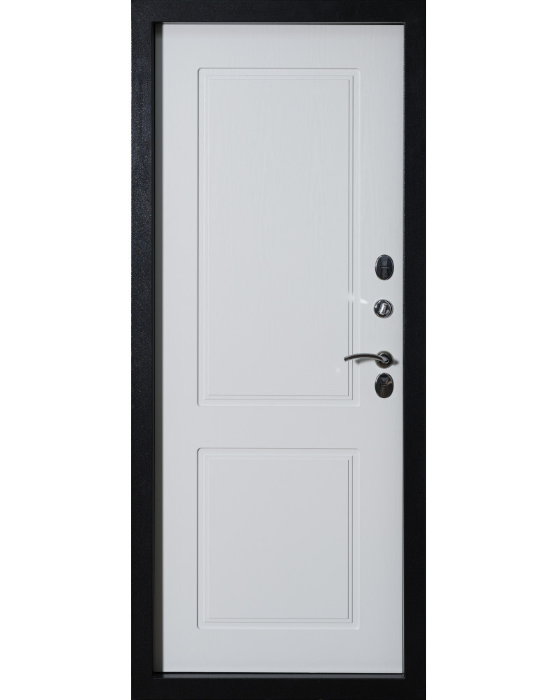 • Покрытие: внешняя сторона - порошково-полимерное, цвет “Антик серебро темное”, внутренняя сторона - фрезерованная МДФ панель 10 мм, цвет “Белое дерево” • Наполнение: Пенополистирол • Два контура уплотнения • Толщина полотна: 60 мм • Две петли • Цельногнутые короб и полотно, отсутствие сварных швов • Размеры: 860х2050 мм, 960х2050 мм Система безопасности: • Основной замок: врезной цилиндровый DF, эксцентрик