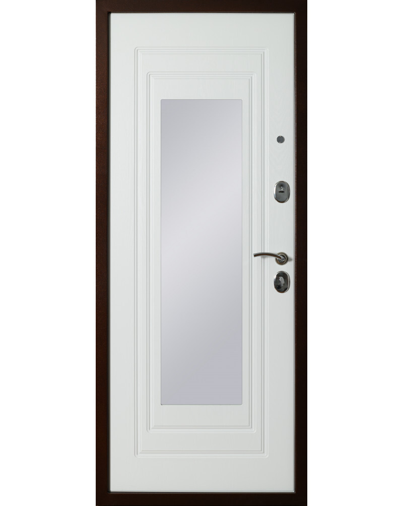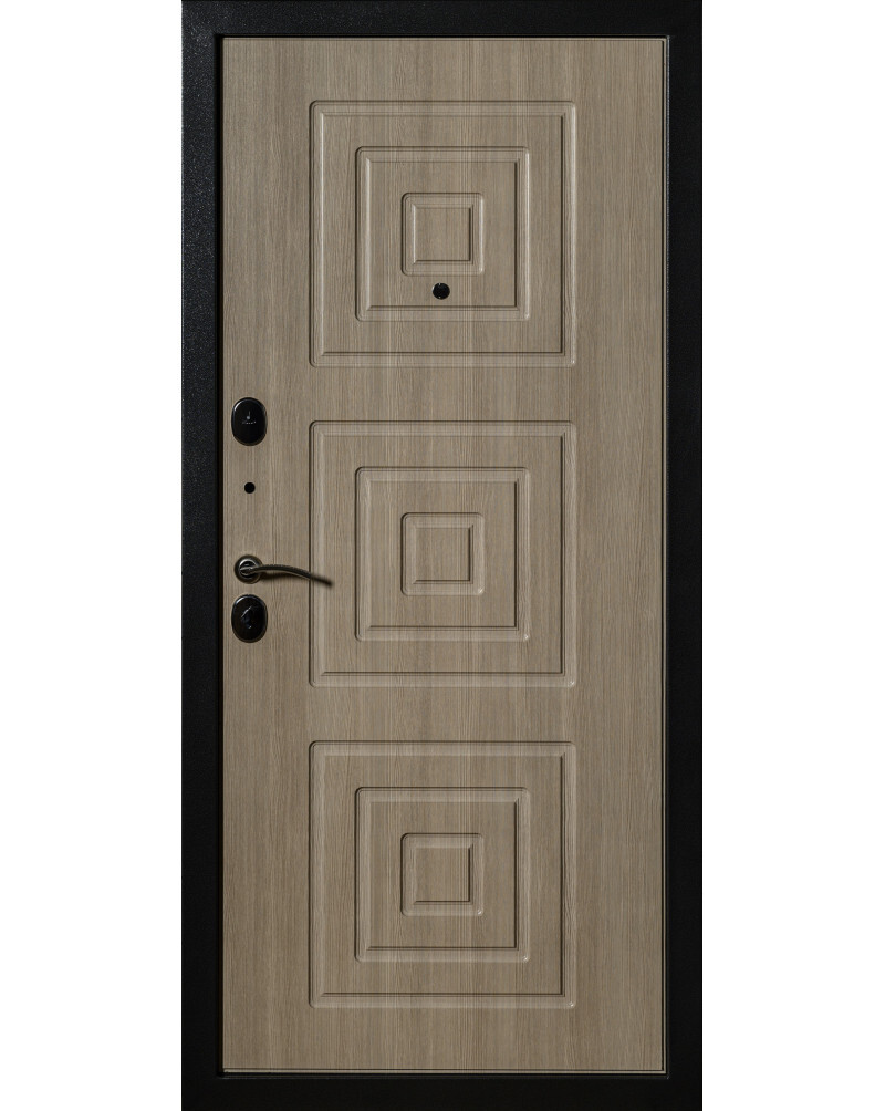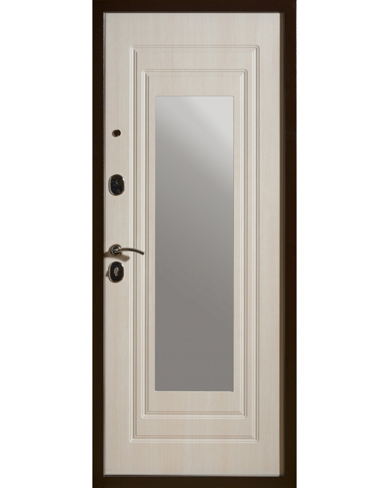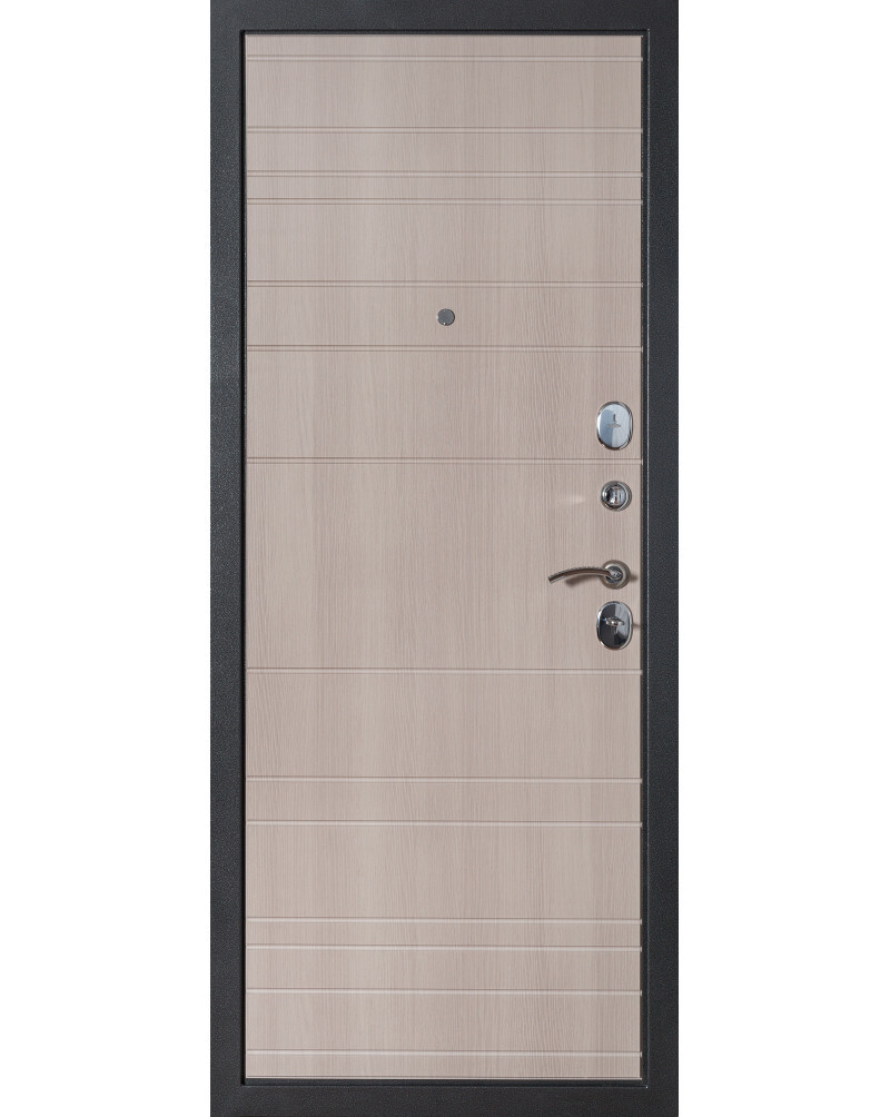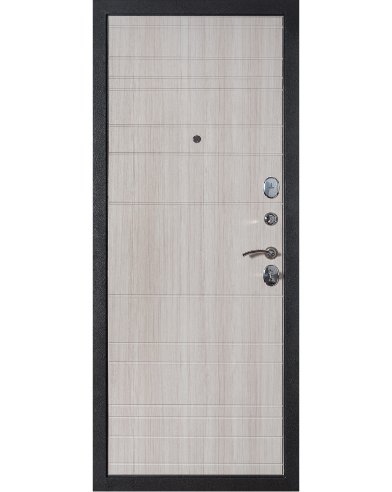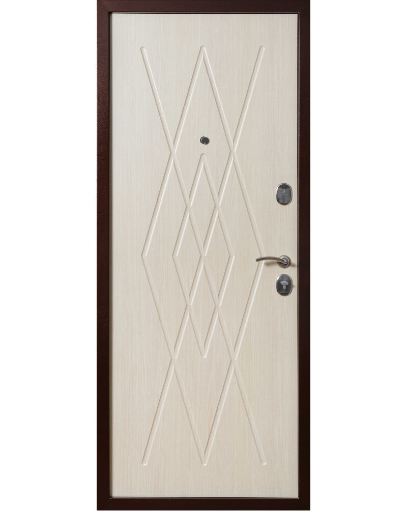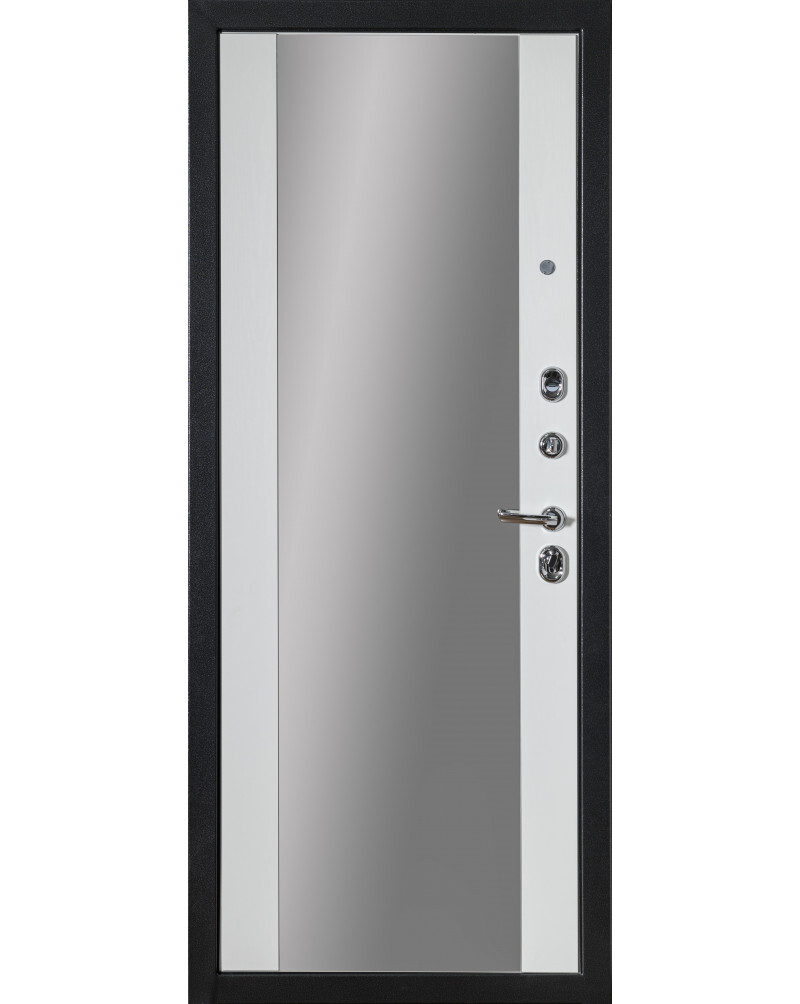 • Покрытие: внешняя сторона - порошково-полимерное, цвет “Антик серебро темное”, внутренняя сторона - фрезерованная МДФ панель 10 мм, цвет “Белое дерево” • Наполнение: Пенополистирол • Два контура уплотнения • Толщина полотна: 60 мм • Две петли • Цельногнутые короб и полотно, отсутствие сварных швов • Размеры: 860х2050 мм, 960х2050 мм Система безопасности: • Основной замок: врезной цилиндровый DF, эксцентрик