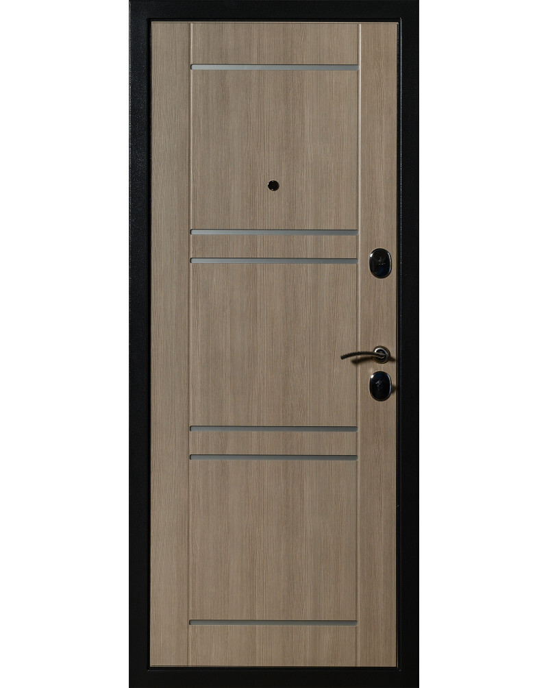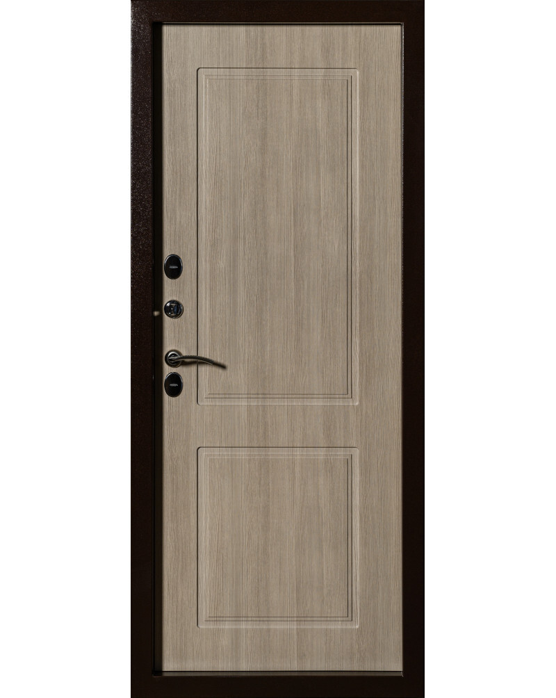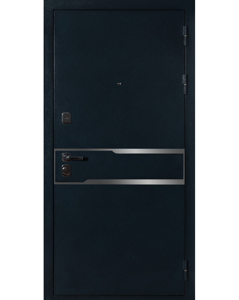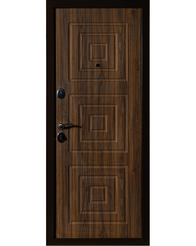 • Два контура уплотнения • Размеры: 860х2050 мм, 960х2050 мм • Открывание: левое/правое • Толщина полотна: 84 мм • Утеплитель короба и полотна: минеральная плита • Петли: евро на подшипниках закрытого типа, открывание на 180 град, 3 шт • Ручка Ферарра • Основной замок: врезной цилиндровый, Гардиан 3211 • Дополнительный замок: врезной сувальдный, Гардиан 3001 • Две броненакладки: врезная закаленная под цилиндр и сувальдная с автошторкой крит • Эксцентрик дает возможность регулировки прижима. Цельногнутое полотно обеспечивает жесткость дверного полотна. Все замки утоплены заподлицо.